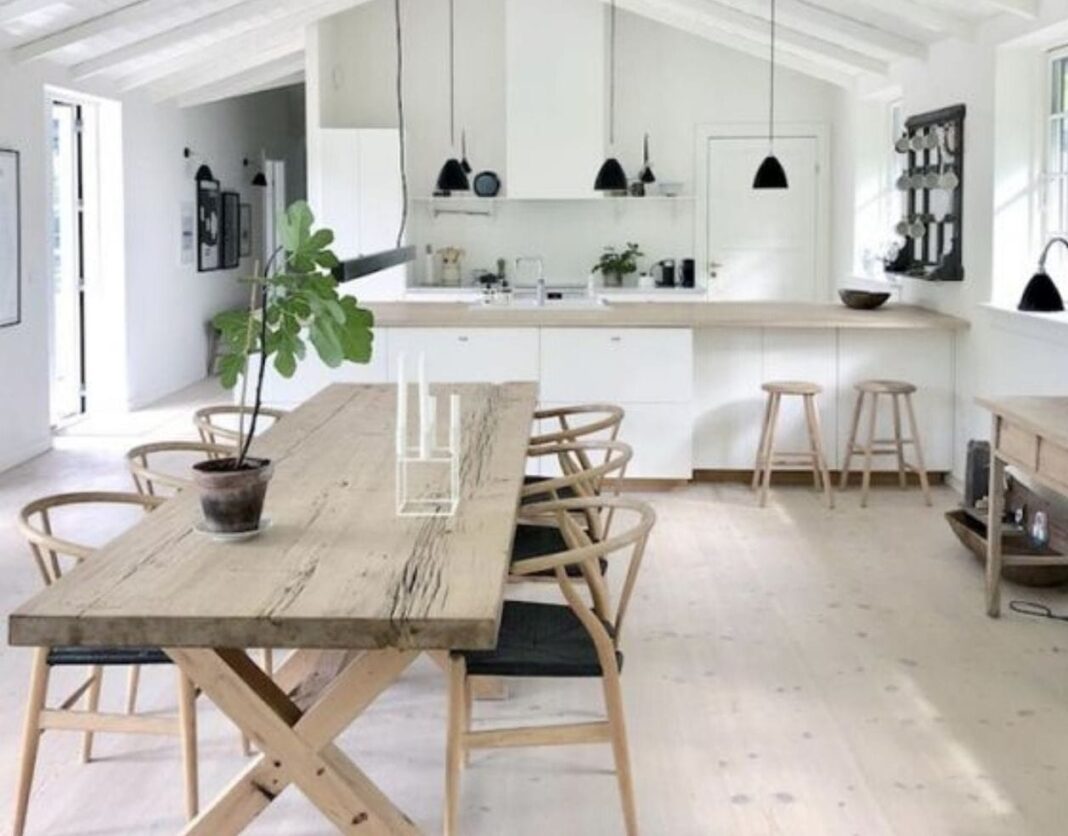 Qualora vi fossero delle travi di legno, quelle potranno anche essere in color noce lasciando sempre il soffitto bianco. Ma in alternativa si può optare anche per lo sbiancamento delle travi conferendo all’ambiente un’aspetto più contemporaneo.