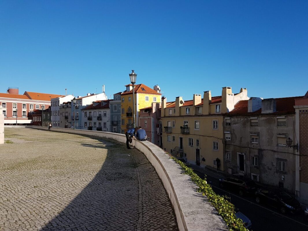 Dall’Elvador si passa al quartiere dell’Alfama attraverso un camminamento ed una terrazza. Lisbona si affaccia sul mare e sul fiume ed è caratterizzata da più altezze: due colli che si trovano alla destra e alla sinistra della parte che giace a livello del mare la Baixa. Sui due colli laterali si trova il quartiere più antico di Lisbona l’Alfama, insieme al Bairro alto, senza trascurare il Chiado che a Natale si ricopre di luci suggestive, e la Baixa, il cuore della città che parte dalle rive del Tago e giunge fino all’Avenida da Liberada.