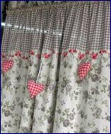Oltre ai quadretti una variante sempre dal sapore country chic è quella delle tendine arricchite da cuori e doppi teli di varia tipologia. Un esempio lo trovate nella foto sottostante.